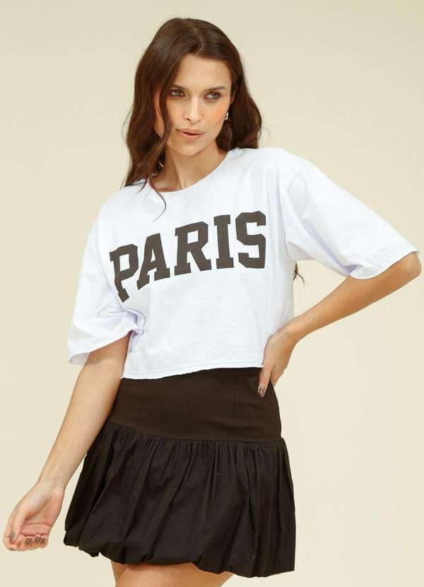 Pop Me - Blusa Cropped em Meia Malha com Estampa Paris Branco
