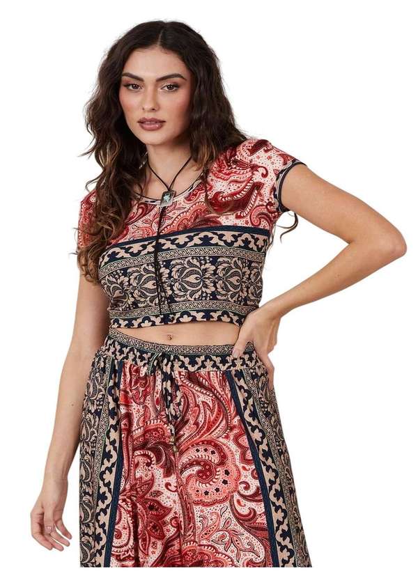Yacamim - Blusa Cropped Estampa Cashmere Yacamim A27 Estampado