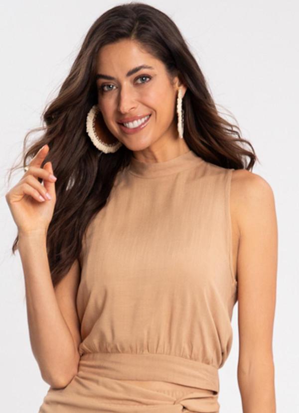 Lunender - Blusa Cropped Gola Alta Amarração Posterior Bege