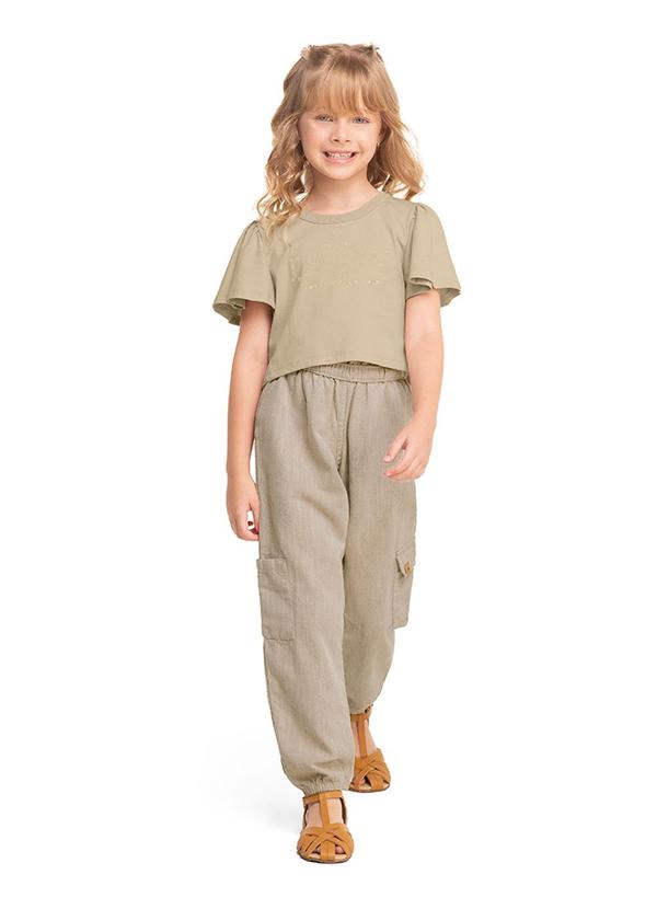 Marisol - Blusa Cropped Manga Curta Infantil Feminina Bege