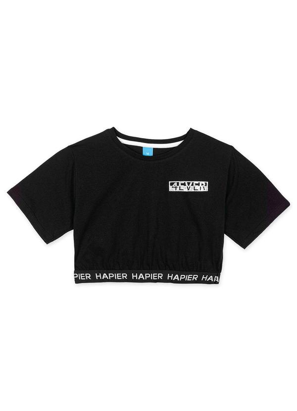 Hapier - Blusa Cropped Manga Curta Juvenil Feminina Preto