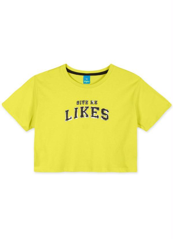 Hapier - Blusa Cropped Manga Curta Malha Menina Amarelo