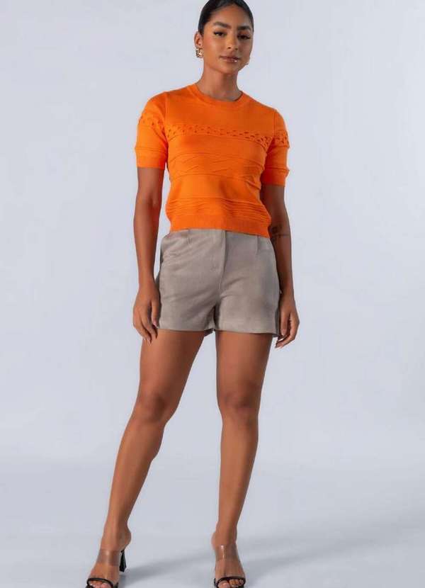 Lamis - Blusa Curta em Viscose com Texturas Laranja