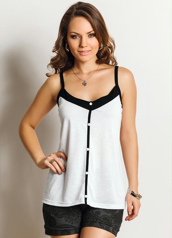 Moda Pop - Blusa de Alça Branca Detalhe Botões