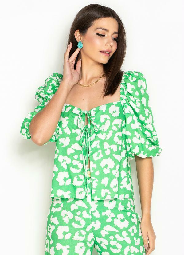 Maria Filó - Blusa de Linho Estampa Lince Verde