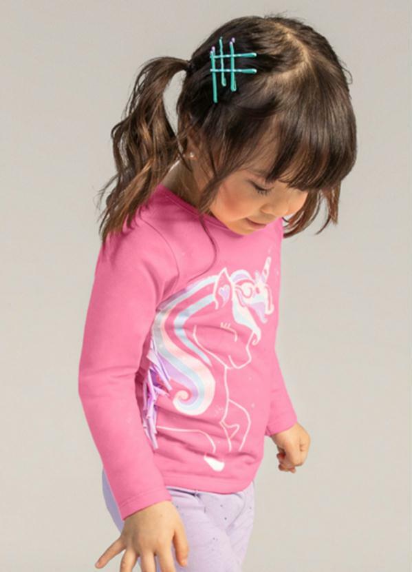 Brandili - Blusa de Malha Infantil Menina Unicórnio Rosa