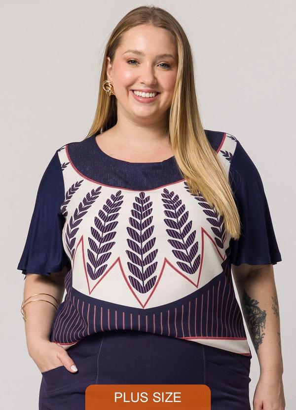 Lisamour - Blusa de Manga Curta Estampada Azul