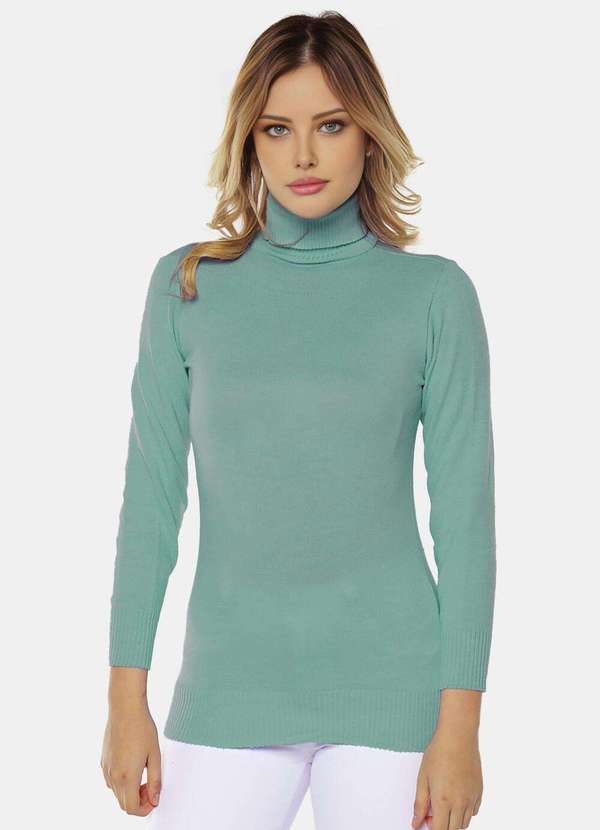 Sob - Blusa de Tricot Verde Gola Alta Manga Longa Justa - Verde