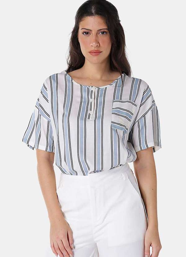 Sob - Blusa de Viscose com Mangas Listrada - Azul