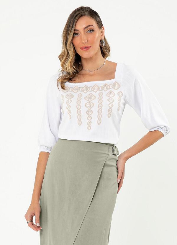 Cativa - Blusa Decote Quadrado em Viscose Branco