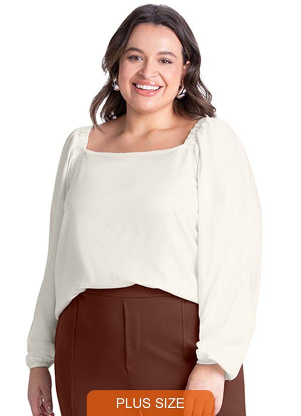 Rezzato - Blusa Decote Quadrado Plus Size Feminino Bege