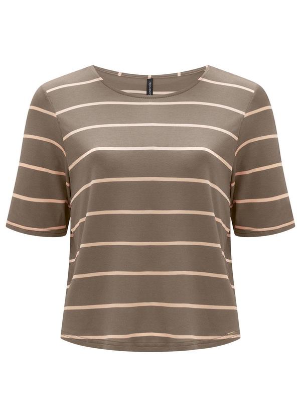 Lunender - Blusa Decote Redondo em Malha Listrada Marrom
