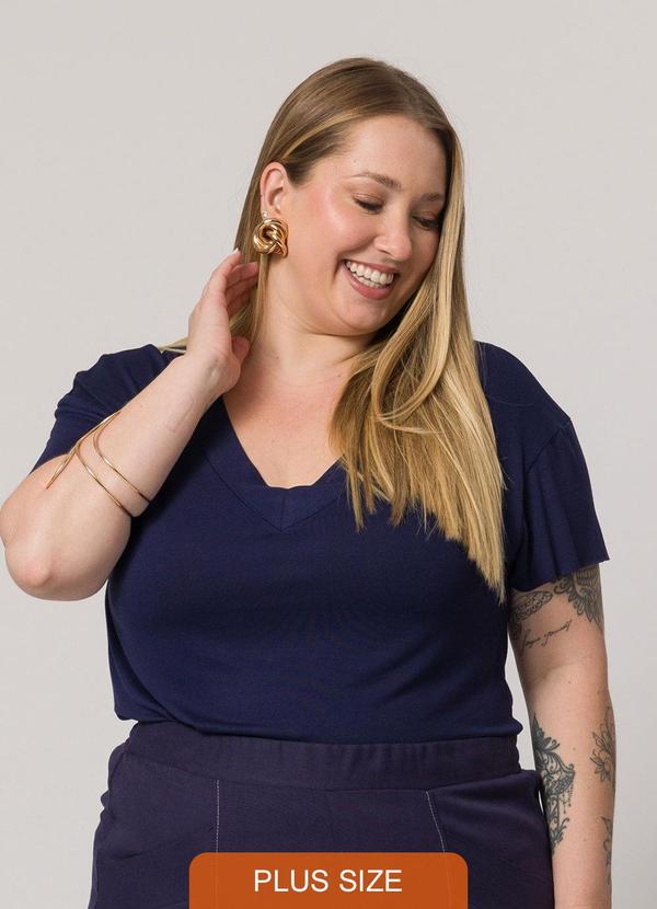 Lisamour - Blusa Decote V de Manga Curta Azul