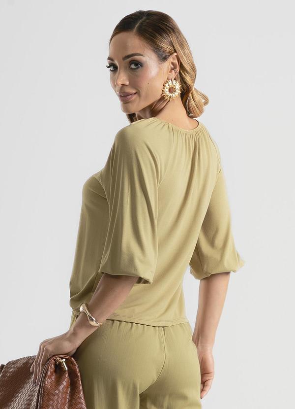 Cativa - Blusa Decote V em Crepe Caramelo
