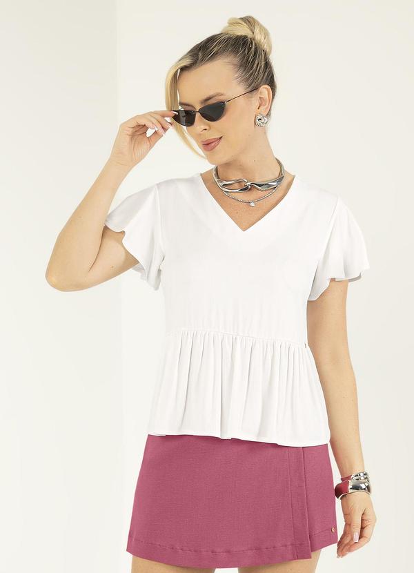 Gris - Blusa Decote V em Viscose Off White