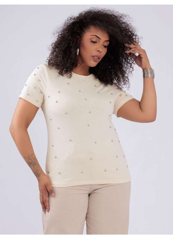 Blusa com detalhes tachas metalicas, confeccionado em algodão e elastáno. Guia de Medidas: 44 ¿ Busto 102cm | Cintura 106cm | Comprimento 64cm 46 ¿ Busto 106cm | Cintura 110cm | Comprimento 65cm 48 ¿ Busto 110cm | Cintura 114cm | Comprimento 66cm Composição: 95% Algodão 5% Elástano
