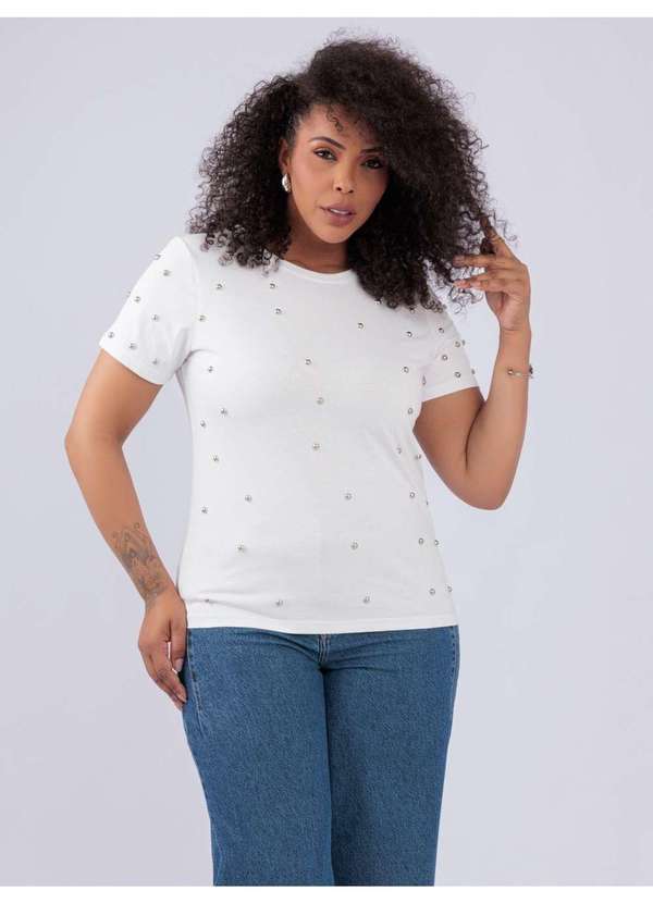 Blusa com detalhes tachas metalicas, confeccionado em algodão e elastáno. Guia de Medidas: 44 ¿ Busto 102cm | Cintura 106cm | Comprimento 64cm 46 ¿ Busto 106cm | Cintura 110cm | Comprimento 65cm 48 ¿ Busto 110cm | Cintura 114cm | Comprimento 66cm Composição: 95% Algodão 5% Elástano