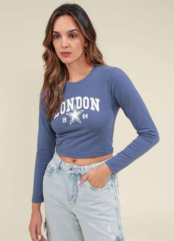 Pop Me - Blusa em Cotton Manga Longa London Azul