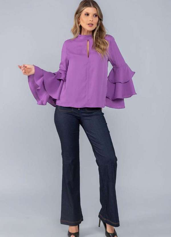 Lamis - Blusa em Crepe Gola Alta Manga Babado Lilas