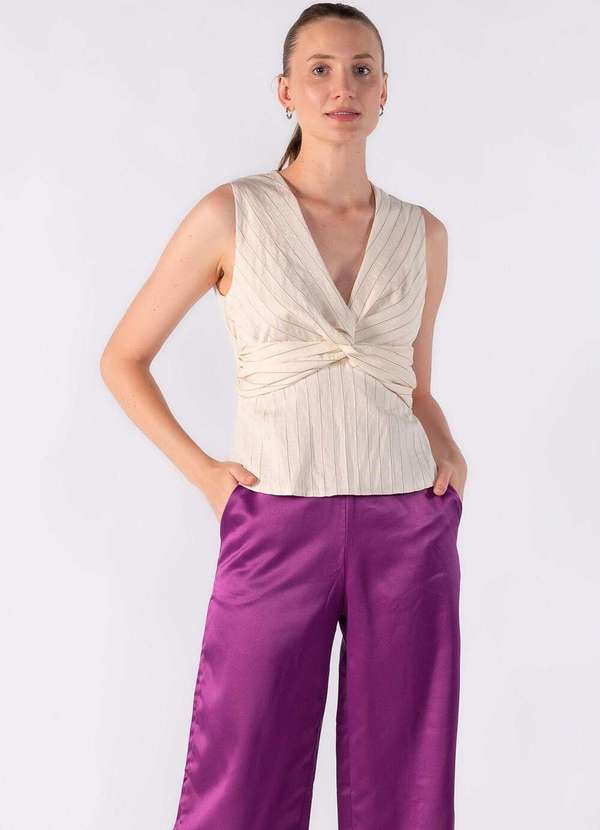 Lamis - Blusa em Listras Peplum com Detalhe no Busto Creme