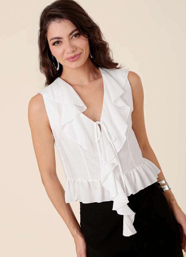 Pop Me - Blusa em Marrant Light sem Mangas com Babados Branco