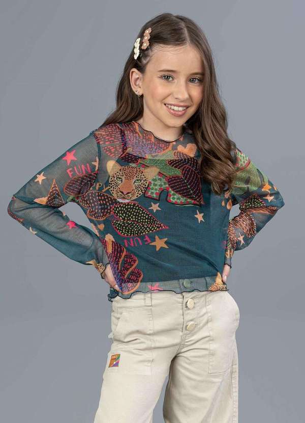 Ok e Pakita - Blusa em Tule Elastic com Estampa Exclusiva Pakita Estampado