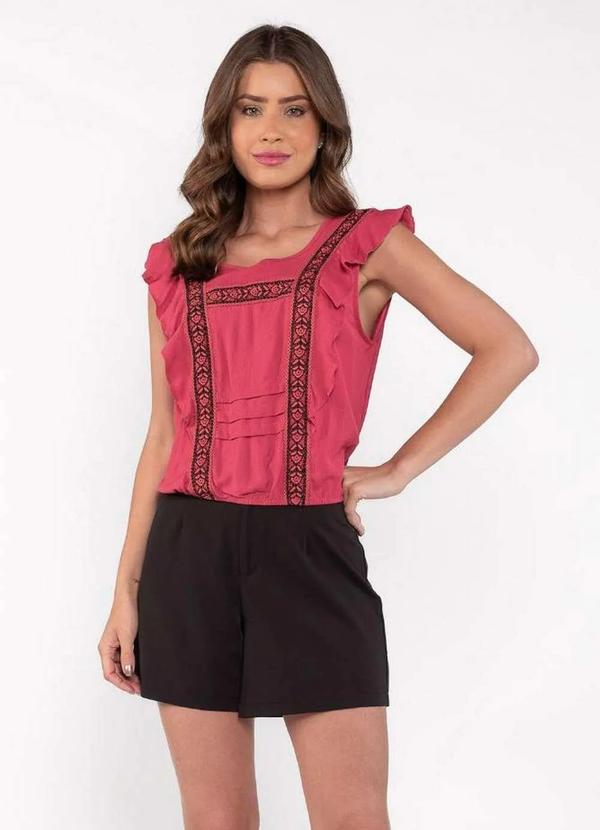 Lamis - Blusa em Viscose com Babados Aplicacao Guippir Rosa