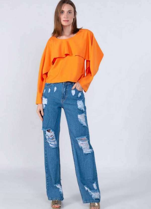 Lamis - Blusa em Viscose Recorte Manga Laranja