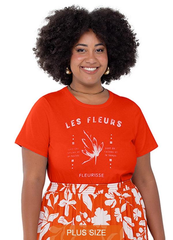 Rezzato - Blusa Estampa Frase Adulto Plus Size Laranja