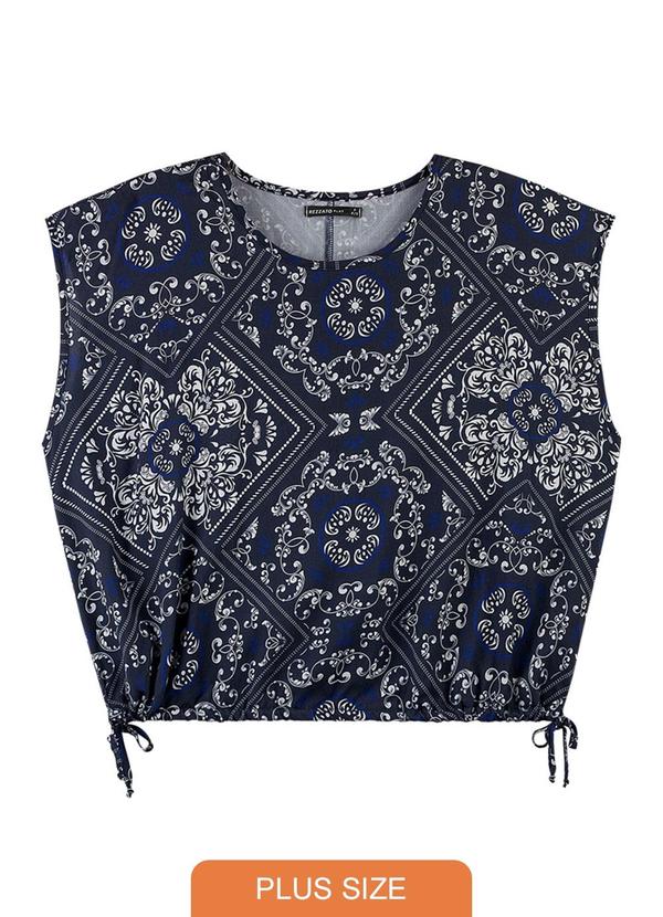 Rezzato - Blusa Estampada Abstrata com Ajuste Plus Azul
