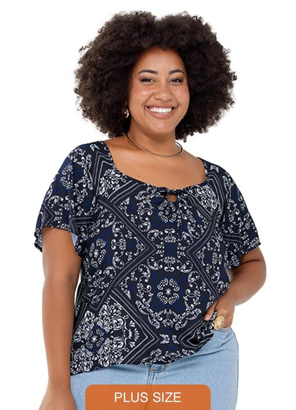 Rezzato - Blusa Estampada Gola Ampla Adulto Plus Size Azul