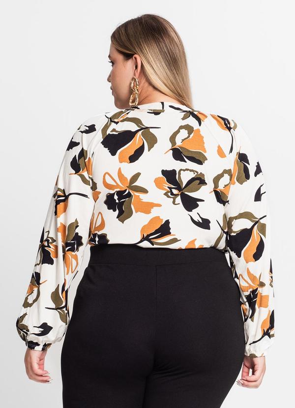 Secret Glam - Blusa Estampada Manga Longa Plus Size Bege