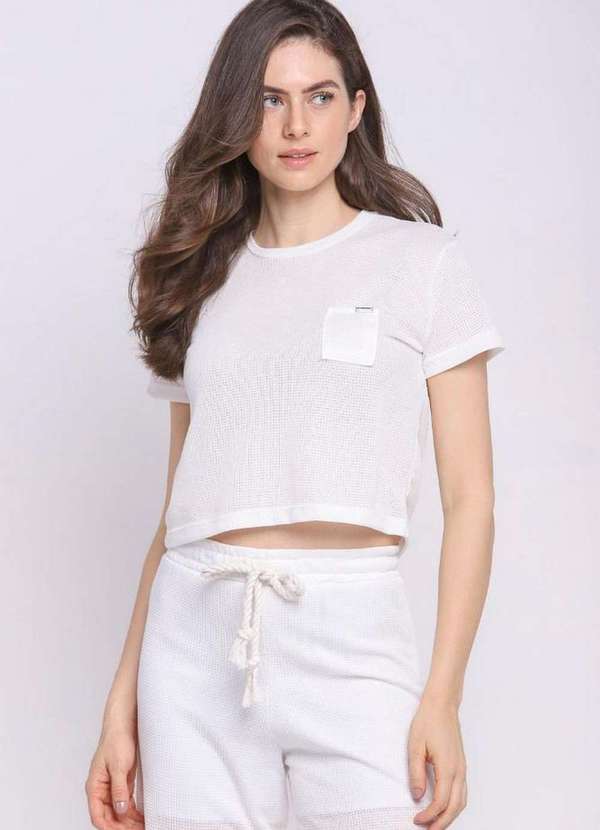 Polo Wear - Blusa Feminina Curta Textura Polo Wear Branco Branco