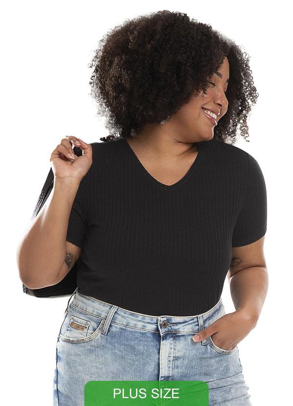 Habana - Blusa Feminina de Manga Curta Plus Size Preto