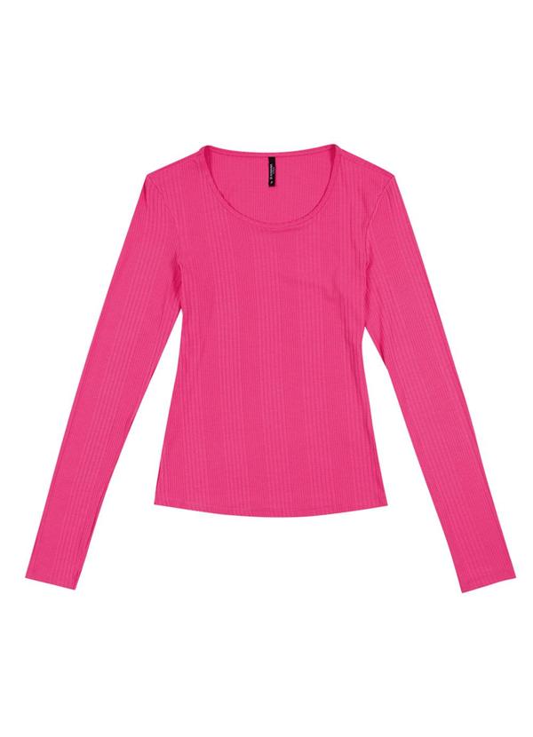 Habana - Blusa Feminina em Canelado Manga Longa Rosa