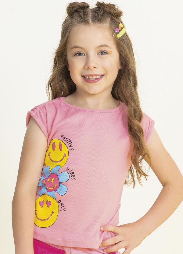 Cativa Kids - Blusa Feminina Estampada com Glitter Rosa