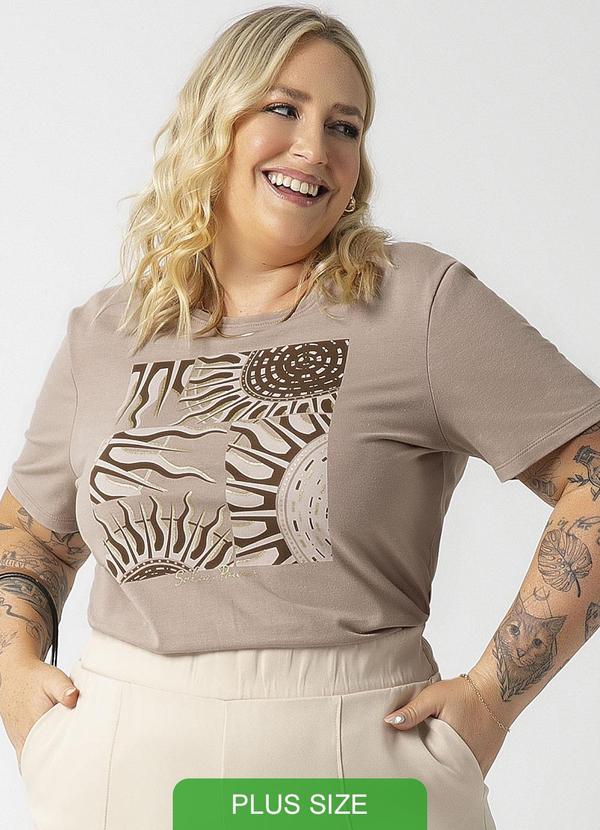 Habana - Blusa Feminina Estampada em Cotton Bege