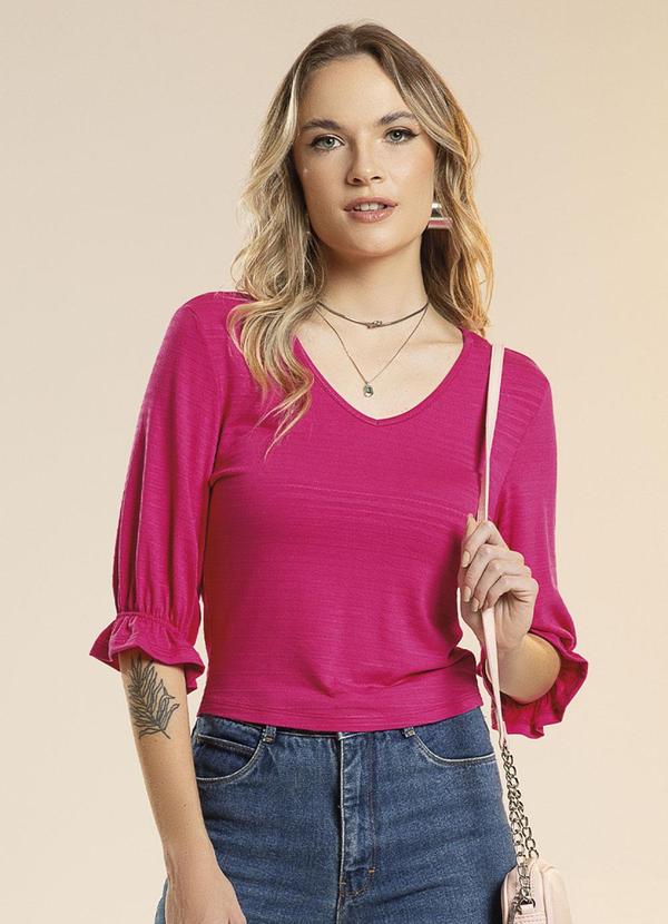 Habana - Blusa Feminina Estilo Cropped com Manga 3/4 Rosa