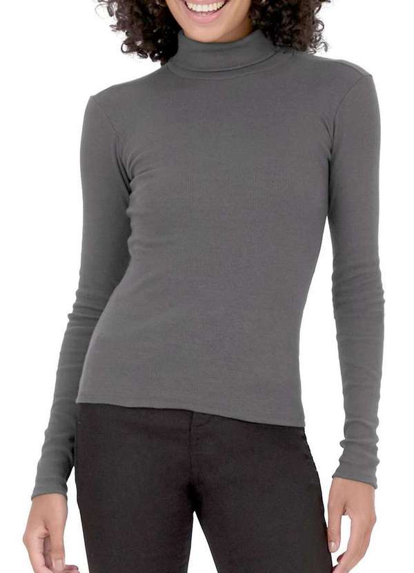 Características: Blusa Feminina Manga Longa Confeccionada em algodão ribana Possui mangas longas e gola alta Modelagem acinturada fazendo com que a peça fique mais ajustada ao corpo Modelo atende tamanho Plus Size Composição: Na Cor 60000 Grafite: 50% Algodão, 49% Poliéster e 01% Elastano Demais Cores: 99% Algodão e 01% Elastano