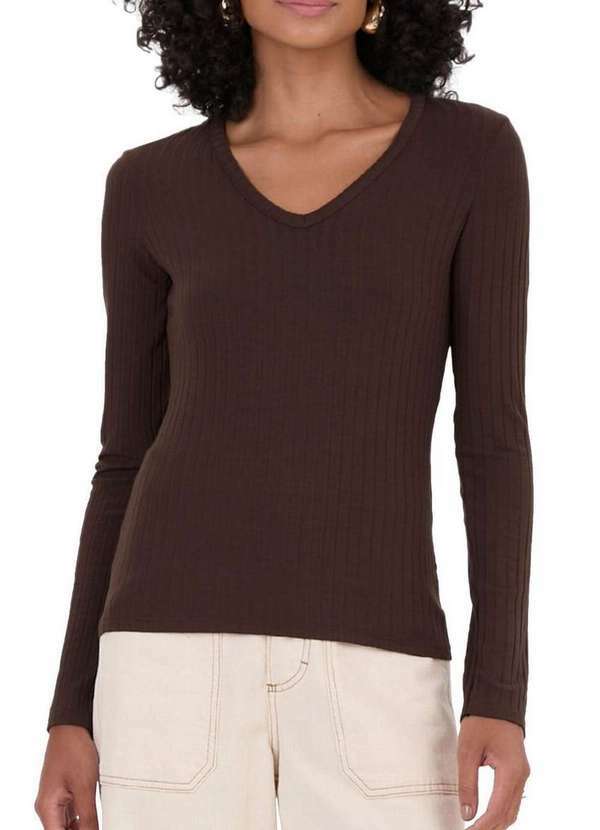 Características: Blusa Básica Feminina Confeccionado em malha canelada de viscose Proporciona conforto e maciez ao vestir Seu design clean e minimalista a torna perfeita para looks casuais e elegantes O tecido leve e respirável torna-a adequada para todas as estações do ano Possui decote V Mangas longas Peça clássica e versátil que não pode falta no guarda roupa Atende tamanho Plus Size Composição: 85% Viscose no Mínimo