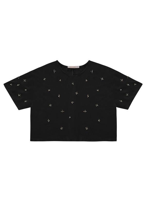 Endless - Blusa Feminina Manga Curta com Strass Preto