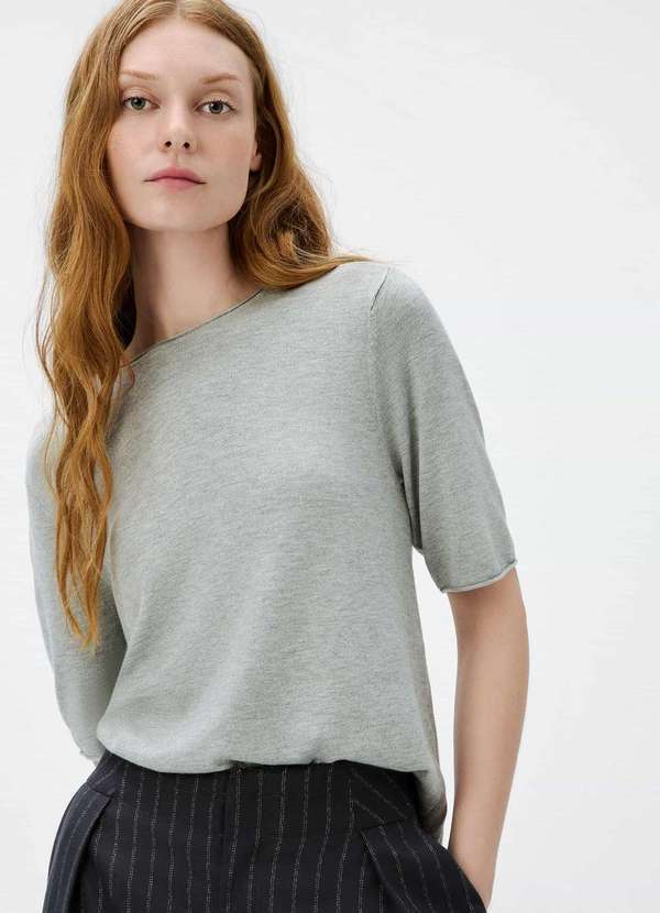 Hering - Blusa Feminina Manga Curta em Trico Leve Cinza