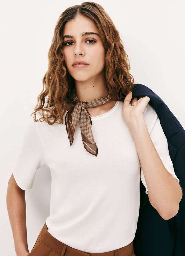 Hering - Blusa Feminina Manga Curta em Trico Leve Branco