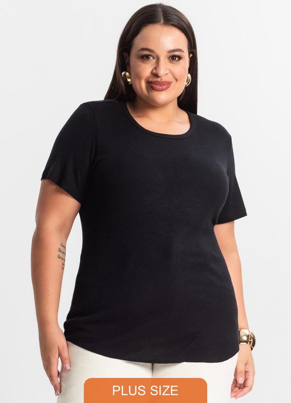 Rovitex - Blusa Feminina Manga Curta Ribana Sublime Preto