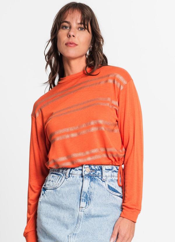Rovitex - Blusa Feminina Manga Longa em Visco Tricot Laranj