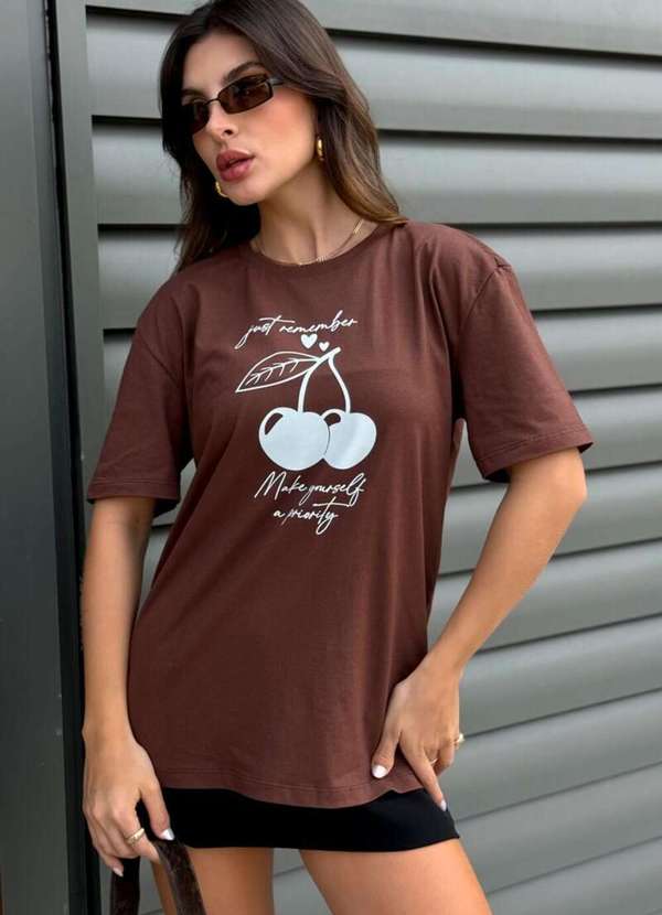 Cianitas - Blusa Feminina Over Marrom Escuro Cereja - Marrom