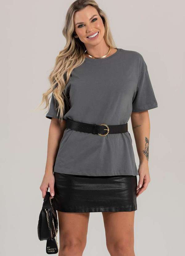 Cianitas - Blusa Feminina Oversized Chumbo Lisa - Oversized