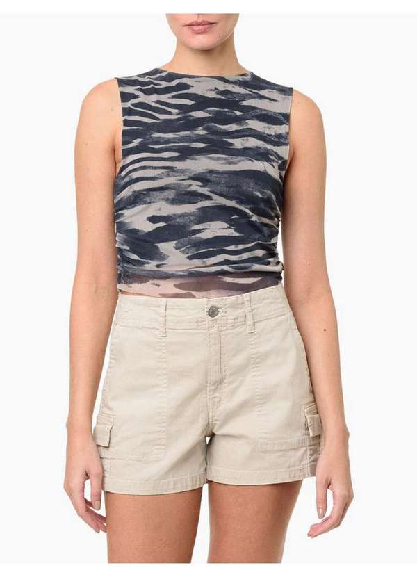 Calvin Klein Jeans - Blusa Feminina Tule Estampado - Marinho Azul