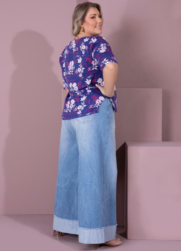 Outlet - Blusa Floral Marinho com Decote Quadrado