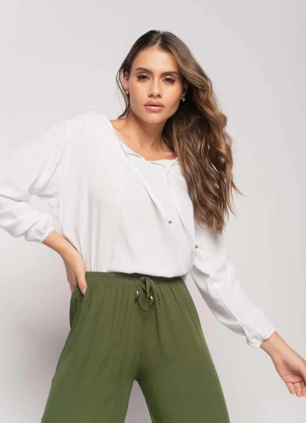 Salvatore Fashion - Blusa Gola V Manga Longa Viscolinho Branco